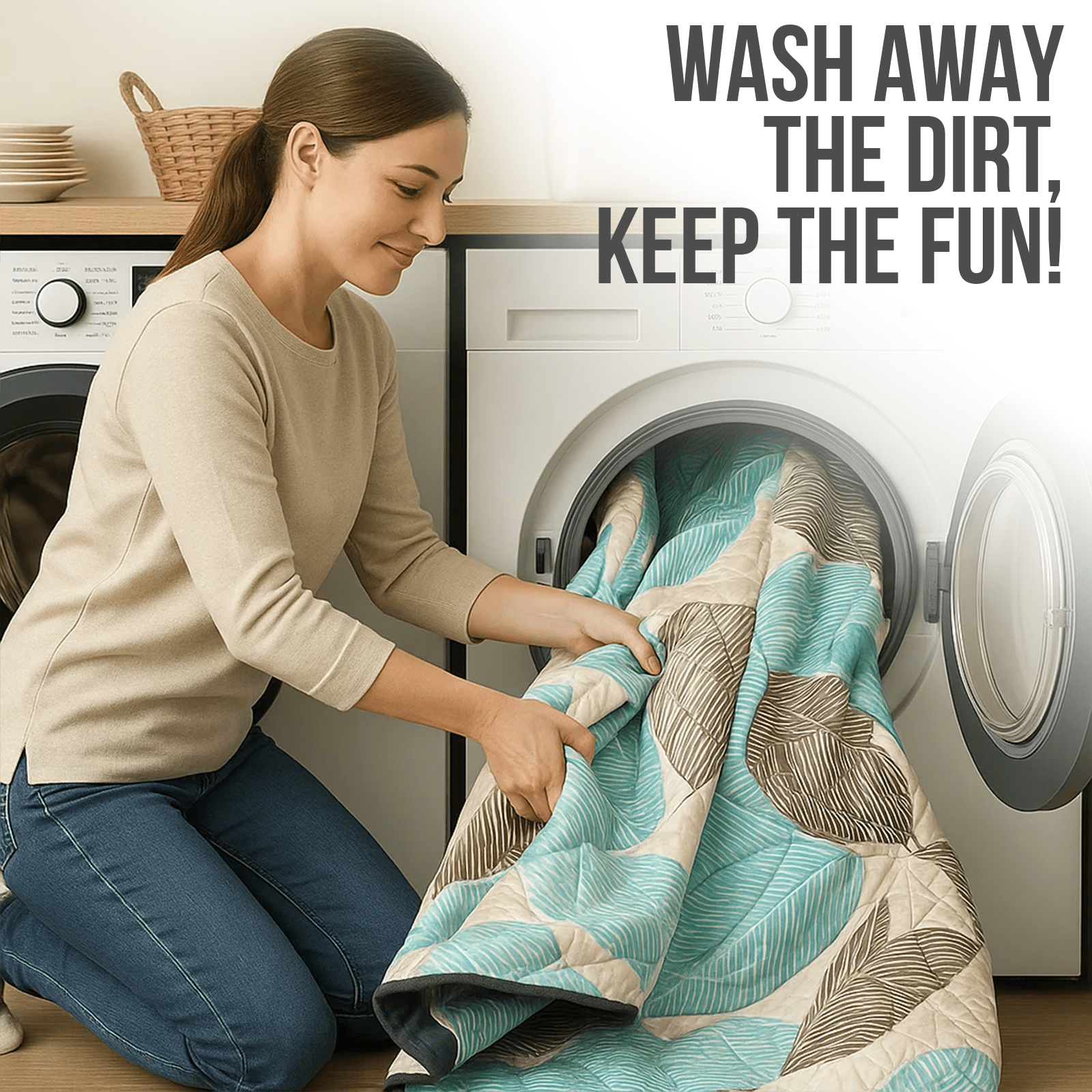 We love this picnic blanket! Folds up into a nice square with a handle for those fun family picnics anywhere anytime. Never leaves my truck. Has came in handy so many times. Whether at the park, playground, beach, or camping. My kiddos and I love this product.