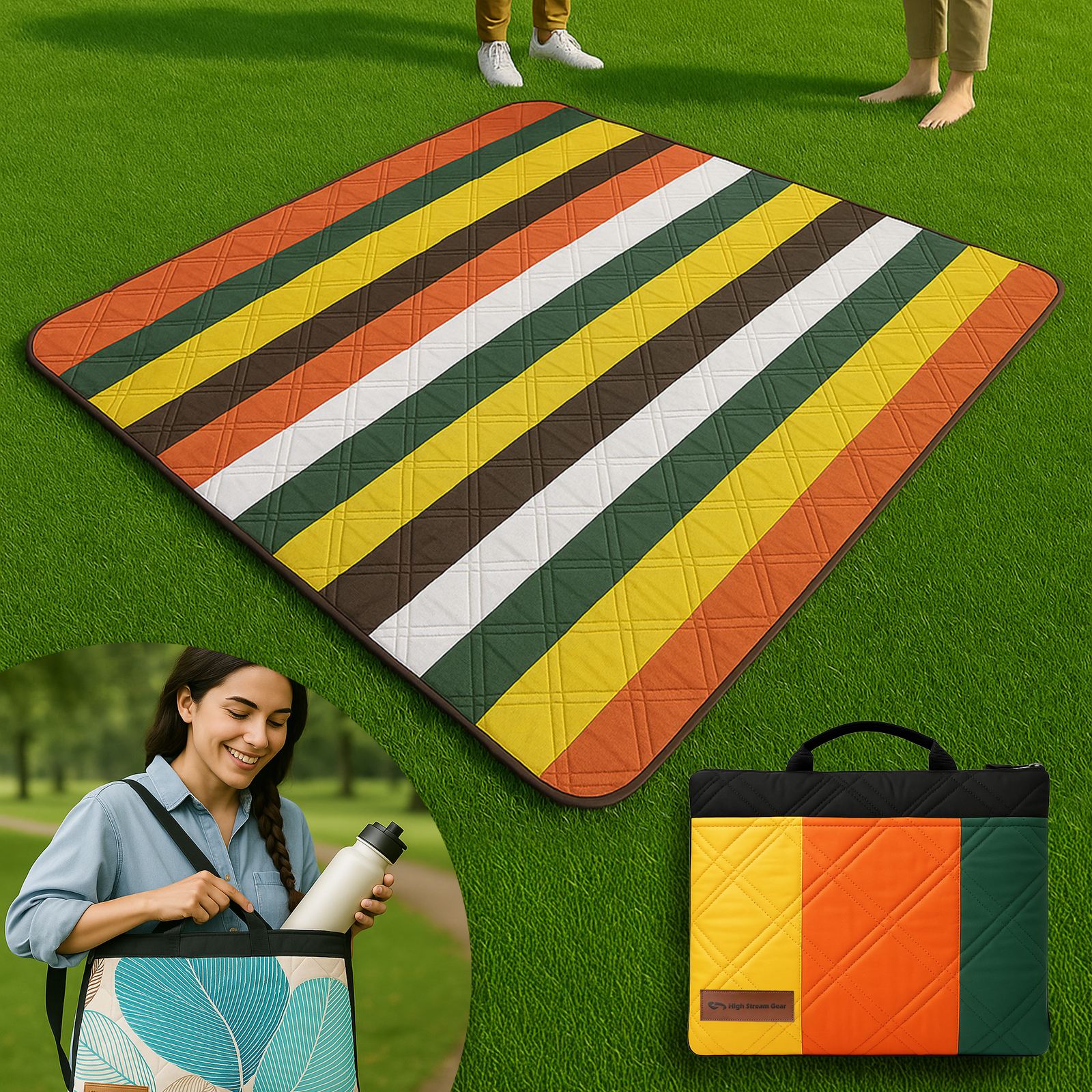 - “✅ 2-in-1 Picnic Mat That Folds Into a Bag This picnic blanket waterproof foldable design transforms into a carry bag for easy transport—perfect for your picnic essentials and outdoor adventures.”